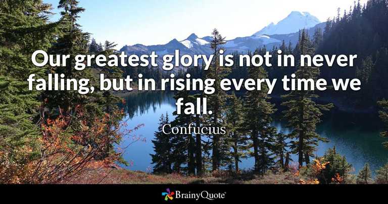 “Our greatest glory is not in never falling but in rising every time you fall.” -Confucius
