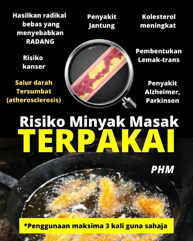Peringatan yang dimuat naik di laman rasmi Facebook, PHM memberitahu bahawa tindakan menggunakan minyak masak berulang kali boleh menyebabkan terkena penyakit seperti penyakit jantung atau kanser.