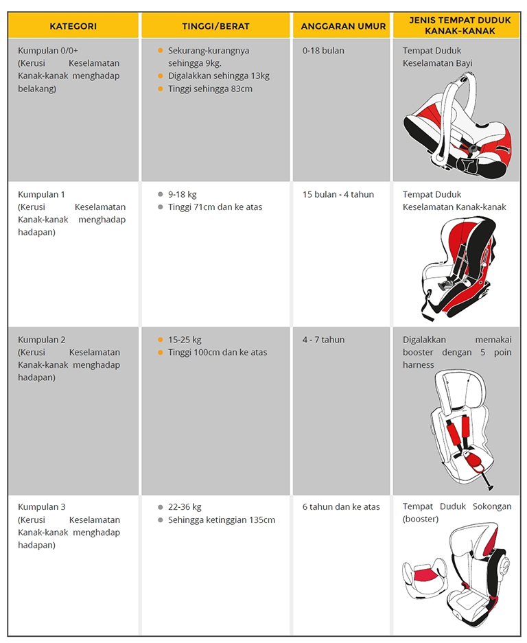 Kerajaan telah mengubal undang-undang dengan mewajibkan penggunaan child car seat bagi setiap kenderaan pada tahun 2020.