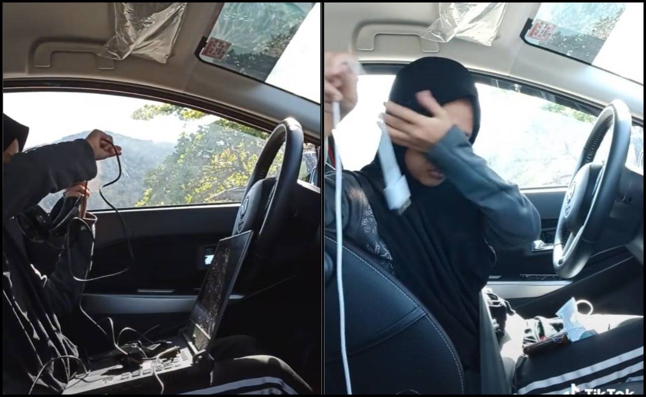 Gadis itu juga dilihat menangis kerana merasa hampa setelah mencuba berkali-kali menggunakan telefon dan juga laptopnya.