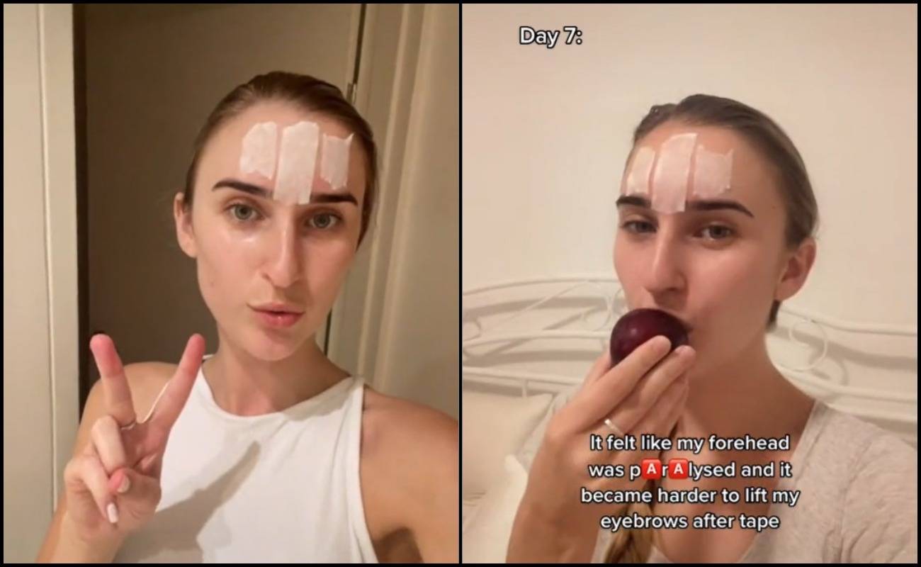 Dalam klip video mengenainya, wanita itu melekatkan pita pelekat pada dahinya sebelum tidur. Dia mendakwa berjaya mendapatkan hasil sama seperti mengambil suntikan botoks, tujuh hari kemudian.
